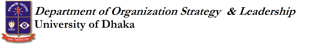 About Department of Organization Strategy & Leadership (OSL): Strategy and leadership excellence are two critical components in today’s increasingly complex, integrated and interrelated global business environment. Future strategists, business leaders and aspiring entrepreneurs need to acquire and sharpen their skills relating to these two critical areas in realizing their individual and organizational goals. Established in June 30, 2016, the Department of Organization Strategy & Leadership (OSL) of the University of Dhaka will provide quality education and training to develop a pool of future strategists, business leaders and entrepreneurs. These pool of human resources with their enhanced knowledge and expertise on strategy and leadership will explore various business opportunities, analyze and lead to exploit those opportunities in developing products and services, effectively implement those opportunities through innovative solutions and achieve organizational sustainability and growth.
